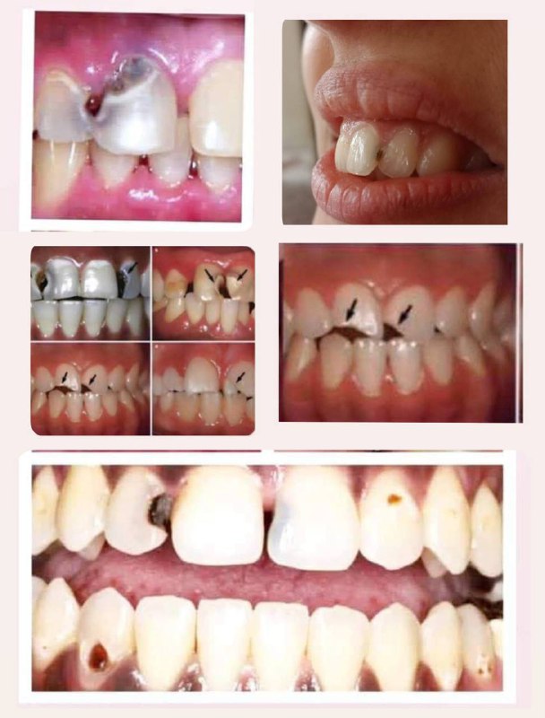 - معالجة السن الامامي المكسور وتعويضه بحشوات تجميلية بيضاء.